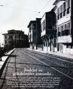 Mimariyle ilgili herkesin mutlaka tanıması gereken isim Doğan Hasol, ‘Anılar Kuşlar Gibidir’ kitabında; “Benim hayatım bahane, olup bitenler şahane” şeklinde, yakın geçmişe doğru bir yolculuğa çıkıyor. Bu güzel yolculuğa biz de katılalım öyleyse. TEMPO: Kitabınızla bir kez daha farkına vardım ki, milletçe yaptığımız hataları tekrar ediyoruz sürekli. DH.: Toplumumuzun belleği zayıf herhalde. Kolay unutuyoruz. Barbaros Bulvarı’nın 1950’lerdeki ilk açıldığı durumu anlatırken mesela, o dönemleri bildiğim halde, ben bile şaşıyorum yeni hallerine. T.: 60 yıl içinde en fazla değişen semtlerden biri de Üsküdar. D.H.: Çok değişti Üsküdar, o ahşap evleriyle, korunmuş mahalleleriyle gerçekten çok hoştu. Ne olursa olsun, eski bir soyluluğun izlerini taşıyordu. Şimdi hiçbirini göremiyorsunuz onların. İki katlı, üç katlı ahşap evlerin yerini, taşlaşmış apartman blokları aldı ve onlar da en kötü şekilde yapıldılar. T.: Bir de Marmaray var artık. D.H.: Yerin altında olacağı için görünüş bakımından çok önemsemiyorum. Üsküdar Meydanı düzenlenmeli tabii, ama ne yapacaklarını bilmiyorum. Trafik bakımından katkılar getirebilir yalnız; çünkü İstanbul’un toplu taşımaya ihtiyacı var.