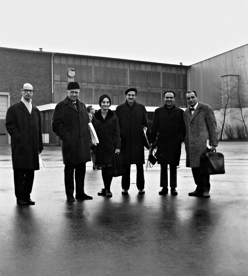 Soldan sağa: İmer Sunguroğlu, Kemal Ahmet Arû, Güner Gezim, Gürkan Gezim, Doğan Hasol, Ruhi Kafesçioğlu, Hannover, 1967. |