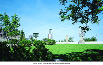 Sanatçı/mimar Melvin Charney tarafından gerçekleştirilen bir tasarımla düzenlenmiş park, yüzyıl ortalarında geçirilen karayoluyla bozulmuş olan çevrenin ve kentsel dokunun onarılmasını sağlamış, ayrıca aradan geçen yola karşın bir açıkhava müzesi halinde ana binayla bütünleşmiş. CCA’nın bahçesi, böylece park ve açıkhava müzesiyle peyzaj tasarımının zengin tarihini anımsatırken, mimarlık ve kent diyaloğuna da atıfta bulunmuş oluyor. Bahçenin arsası, Québec hükümetinin, “sanatların, mimarlık ve çevreyle bütünleşmesi programı” kapsamında, 1986 yılında Montreal Belediyesi’nce CCA’ya tahsis edilmiş. Bakımı CCA’nın sorumluluğunda. Şu sıralarda CCA’da 32 İtalyan fotoğrafçının toplu sergisi, Quebec’li 5 mimarın “Mimarî Enstalasyonlar” sergisi, “Mimar Carlo Scarpa: Tarihle tasarlamak” sergisinin yanısıra periyodik konferanslar ve film gösterileri, öğrenci programları, mimari turlar vb. gibi etkinlikler var. Sonbahar’da CCA’nın gerçek bir müze ve mimarlık merkezi olarak kuruluşunun 10. yılı kutlanacak. Onlara “nice yıllara !” derken kendimiz için de dileyelim: “Darısı başımıza..” * Centre Canadien d ‘Architecture (Kanada Mimarlık Merkezi). |
