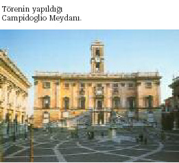 Ancak, uzun bir sıra bekleyen işverenler listesindeki her bir projeye en iyi kişisel katkıyı getirebilmek çabasındadır. Çevreye ve yerelliğe olan duyarlılığını, tümüyle dürüst, gösterişsiz sanat yapıtlarına dönüştürebilen yenilikçi bir mimarlık teknisyenidir. Bravo.” Tören her yıl ayrı bir yerde, ama her zaman mimarlık bakımından önem taşıyan bir yerde yapılıyor. Bu kez, 2002 Ödül Töreni 29 Mayıs akşamı Roma’da Michelangelo’nun ünlü Campidoglio Meydanı’nda görkemli bir şekilde yapıldı. Törenin organizasyonunu üstlenmiş olan American Academy in Rome (Roma’daki Amerikan Akademisi) törenden bir gün önce bir sempozyum düzenlemişti (2). Roma şehrine egemen tepelerden birinin doruğunda yer alan tarihsel Villa Aurelia’da yapılan sempozyumun sabah oturumuna Pritzker Ödülleri adına tanıtım konuşmasıyla Bill Lacy, “Tarihsel perspektifi içinde geçmişte ve günümüzde küreselleşme” başlıklı konuşmasıyla Princeton Üniversitesi’nden Prof. Anthony Grafton, “Küçülen Dünyada Mimarlık” adlı konuşmasıyla Architectural Record dergisinden Karen Stein ve “Mimarlığın Küreselleşmesinin Altı Yönü” başlıklı konuşmasıyla Prof. Wilfried Wang katıldılar. |