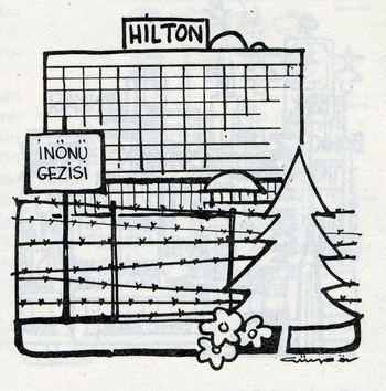 Sheraton oteli de son günlerde bir kuşatma hareketiyle Mete Caddesi tarafındaki yeşil alanı otelin bahçesi haline getirivermiştir. Adı geçen otelin, şimdi genişletme hazırlıkları içinde olduğu duyulmaktadır. Bütün kentlerimizde yeşil alanların -hangi amaçla olursa olsun- kemirilmesine karşıyız. Bu nedenle böyle davranışlara ödün verilmemesini ve ilk girişim olarak İnönü Gezisinde halktan alınanların halka geri verilmesini diliyoruz.