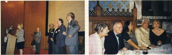 1. Eski başkanlara madalya töreni. Kürsüde şimdiki Başkan. 2. Chillon Şatosu’ndaki yemekte Bn. Seidler, Harry Seidler, Bn. Correa, Charles Correa, UIA Başkanı Sara Topelson de Grinberg.